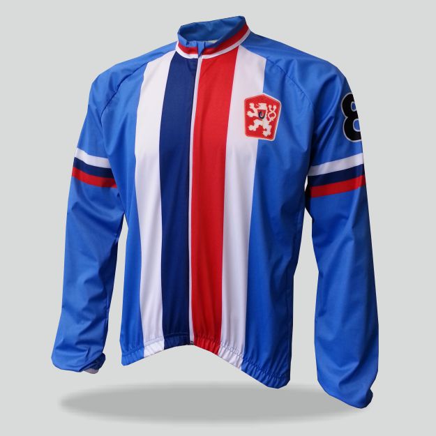 - thermo road jersey of RACEI cut - long sleeves - zip across the whole front part - backside with 3-part pocket with reflective stripe Material: - TERMOMINIK 180g: 100% Polyester - inside brushed material suitable for cold weather, but will not prevent blowing Size: - XS to XXXL - size is possible to adjust by customer wish Printing technology: - 100% sublimation print - it´s possible to choose any color or ad ...